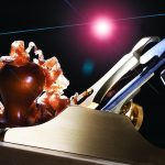 Gouge. Use an out-cannel gouge to create a fair curve from the smaller to the larger circle, to cut the shoulder that locks on the shaft.