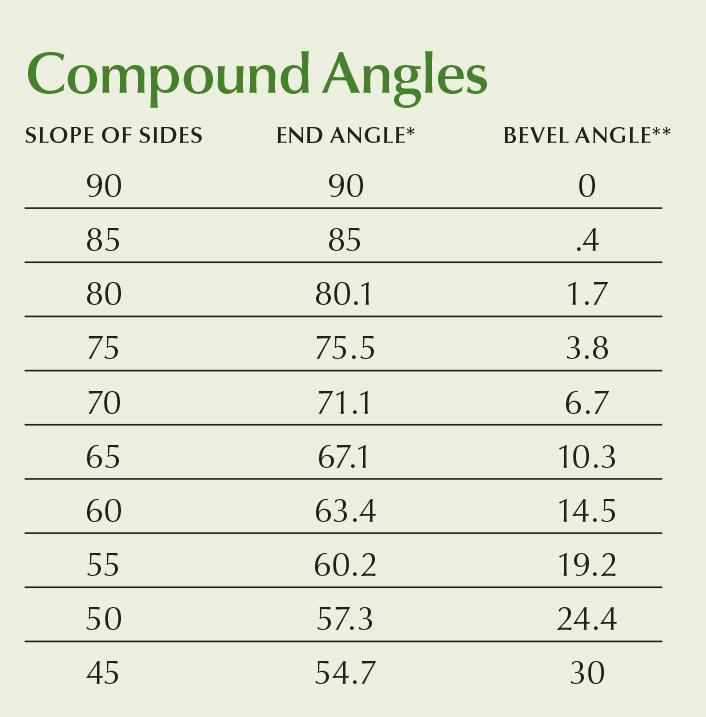 *Angle of miter gauge or miter box to crosscut ends **Tilt of blade when cutting ends
