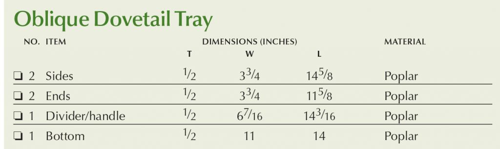 Oblique Dovetail Tray Cut List