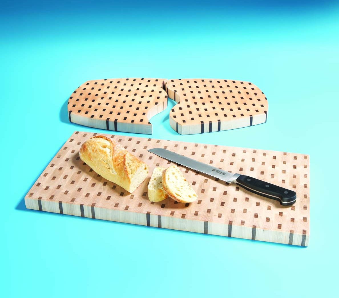 If you like giving gifts that actually get used, a cutting board is the perfect choice; I use one almost every day. But not only will this cutting board get regular use, it’ll get “ooh’s and aah’s” as well. Its contrasting splines give this cutting board visual interest and a clean, contemporary look. Stagger the joints during assembly, and the contrasting splines create a crisp, contemporary look.