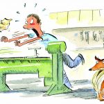 I use melamine for glue-ups like this, because it’s flat, and glue doesn’t stick to it. Again, have all your clamps and cauls ready to go, and glue up the cutting board. The more effort you put into getting it flat now, the less time you’ll spend sanding later. Let the cutting board dry for twenty four hours.