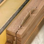 Glue the 3⁄4″ strip back to the apron. Make sure you line up the grain as best you can. On my apron, I positioned my cutline so it would run through some straight quartersawn grain on the apron. That helped conceal the joint line on the finished piece.