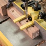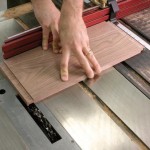 A fair amount of downward pressure ensures accuracy with this technique. If you don’t keep the board pressed down flat, it will try to rise up on you. Even a bit of this will result in a too-thick tenon. If you are not sure that you are holding the piece down firmly, make a second pass over the blades.