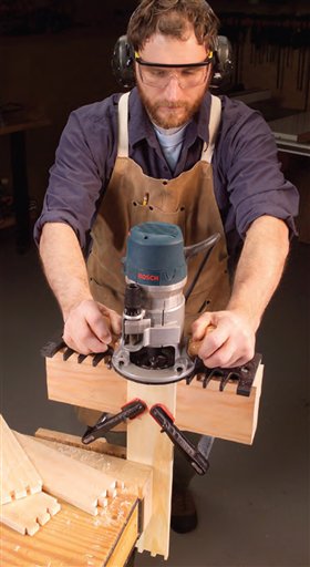 | Rout dovetails on the box’s sides. You can use a throughdovetail jig, as shown here, use a half-blind jig or cut them by hand. Corner joints don’t get any stronger than this! |