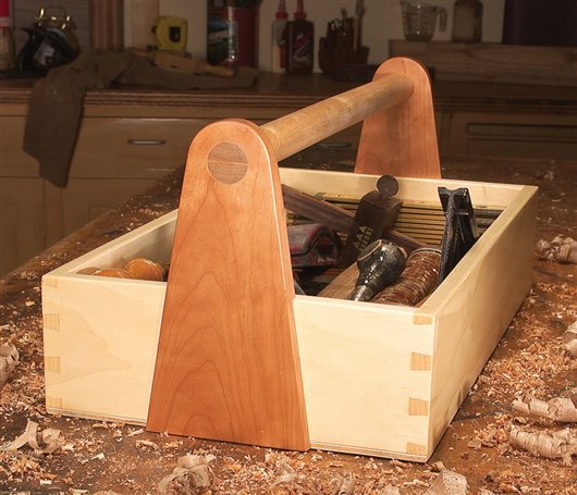 | A lightweight, sturdy toolbox is perfect for odd jobs around the house. Carpenters used to make their own, just nailed together. I’ve built a more sophisticated design using two different dovetail joints. |