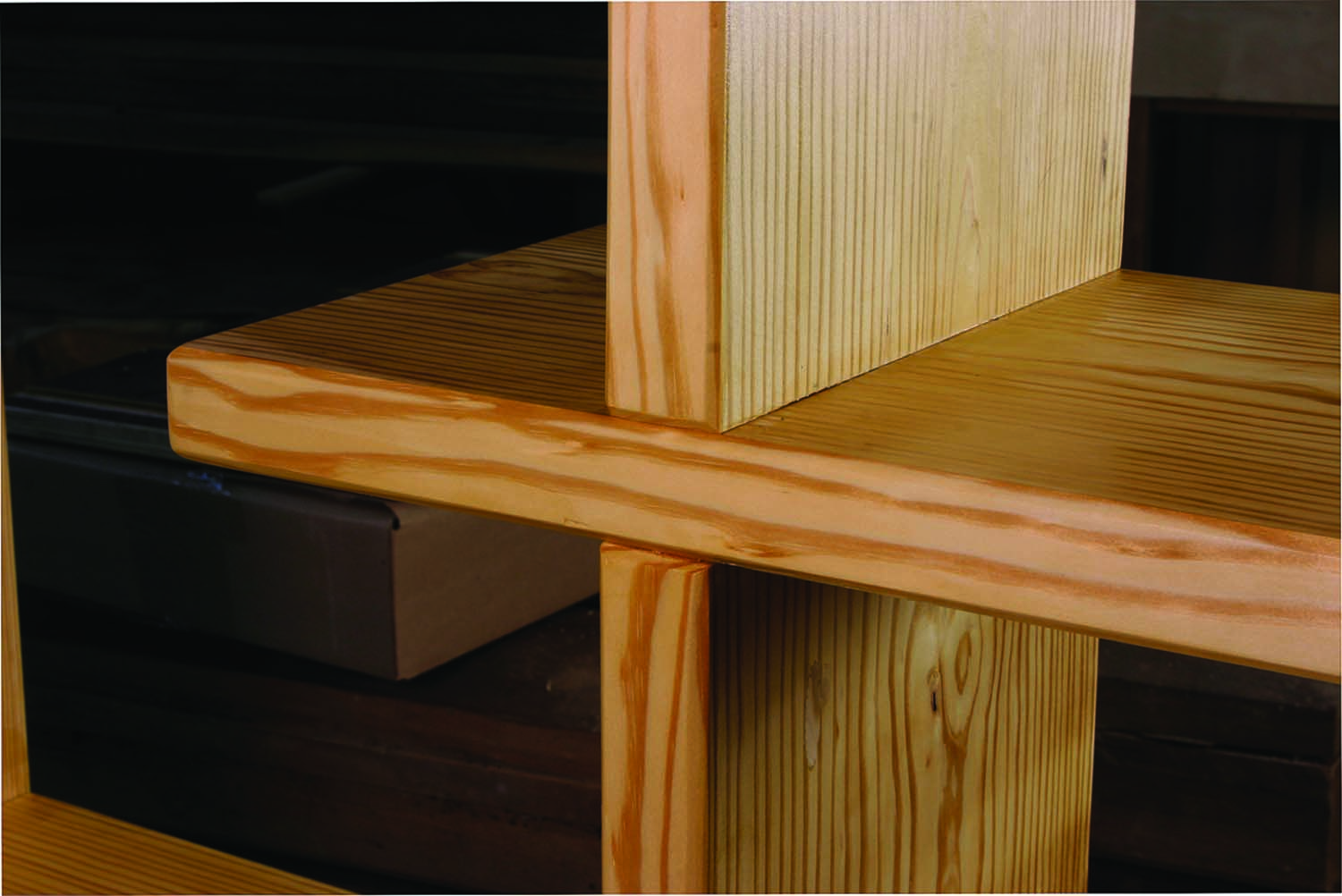Construction lumber dressed up for display.