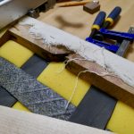 I make both templates from one piece of plywood because the curves are the same radius – one is an inside curve and the other is an outside curve.