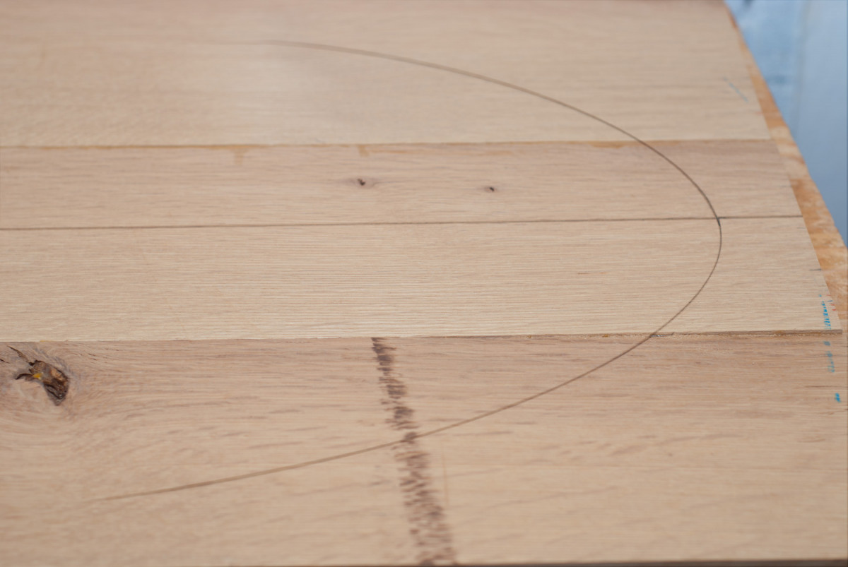 Trace & cut. Trace the arc of the pattern, then re-position and trace again to create an ellipse. Cut just wide of the top’s perimeter.