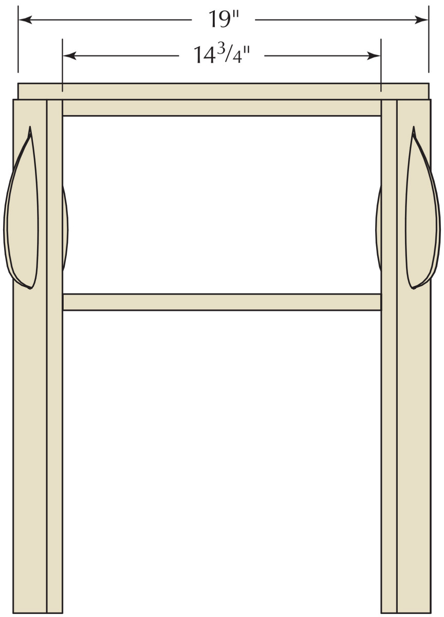 Now rip the legs to width and length. Using the leg cutout pattern, trace the cutout on the top of each leg, then drill a clearance hole and saw out the waste with a jigsaw, cutting close to your layout lines.