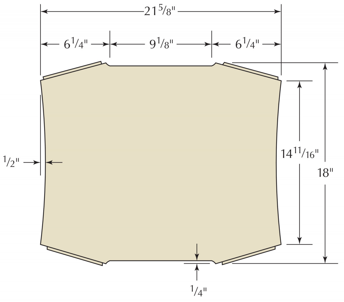 Because the shelf is symmetrical along both its axes, you need to make only a quarter pattern. Outline the shelf using the downloadable pattern (see Online Extras) or by using the measured drawings on the next page as a guide, then trim close to your lines on the band saw or with a jigsaw.