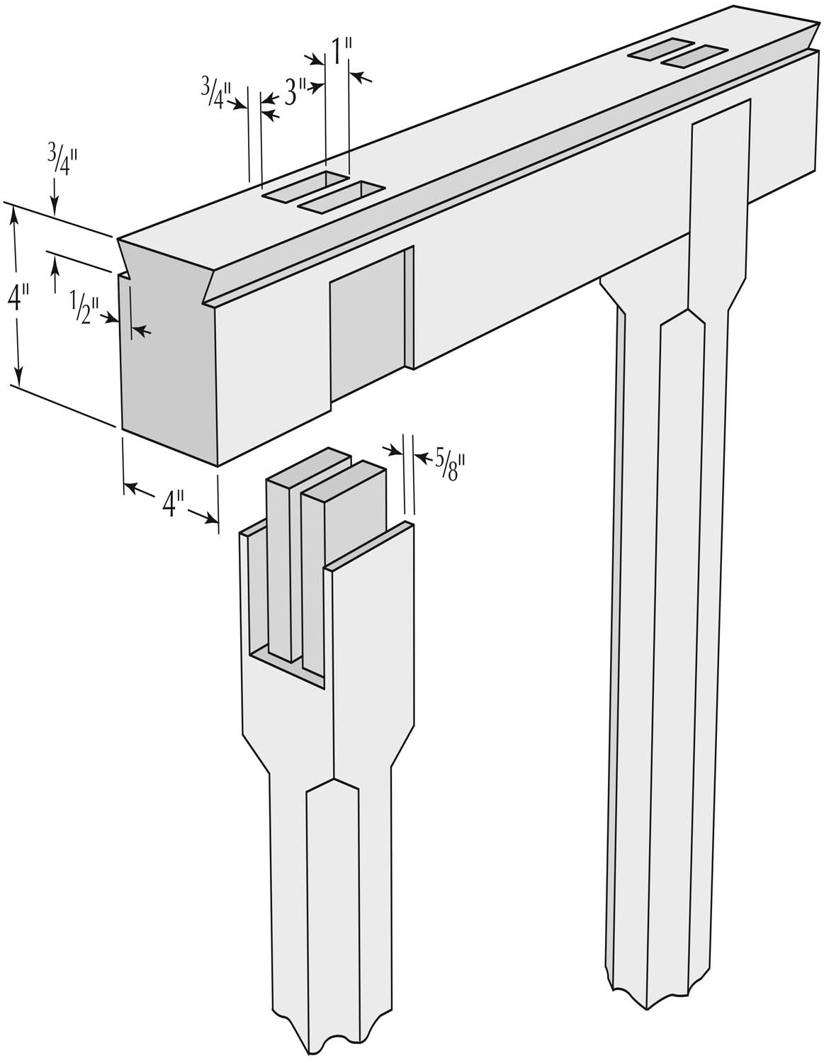 Artistic as well as strong. The leg-to-beam mortise-and-tenon joint handles front-to-back stress while the non-shouldered tenons, which are locked into the beam, help to keep the table from racking.