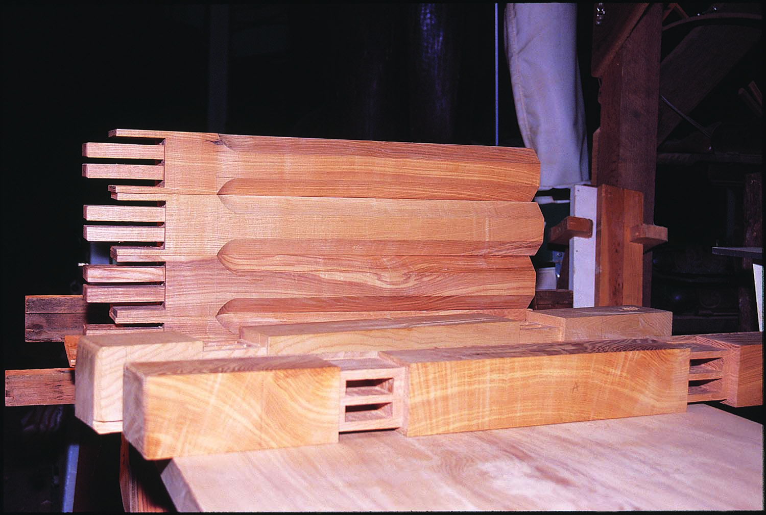 Eye-catching and strong. The mortise work for the leg-to-beam joinery is complex in design but uncomplicated to produce.