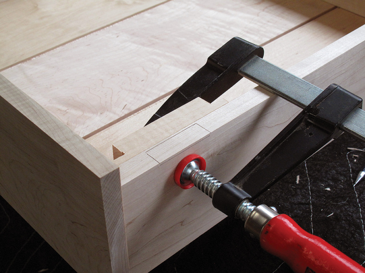 I finish-planed the top and bottom, then simply glued them in place  and clamped them to dry. There’s a lot of glue surface; they aren’t going anywhere.