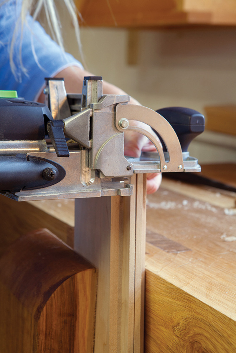 The door is joined with one Domino at each corner, and one at each end of the medial rail. Again, take the time to get the layout right and register properly on your marks before making the cuts.