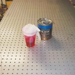 18 Apply glue to a piece of MDF. Use a roller for even glue coverage.