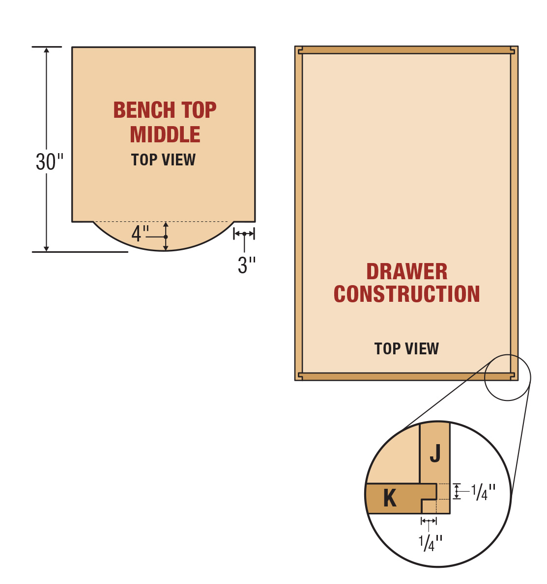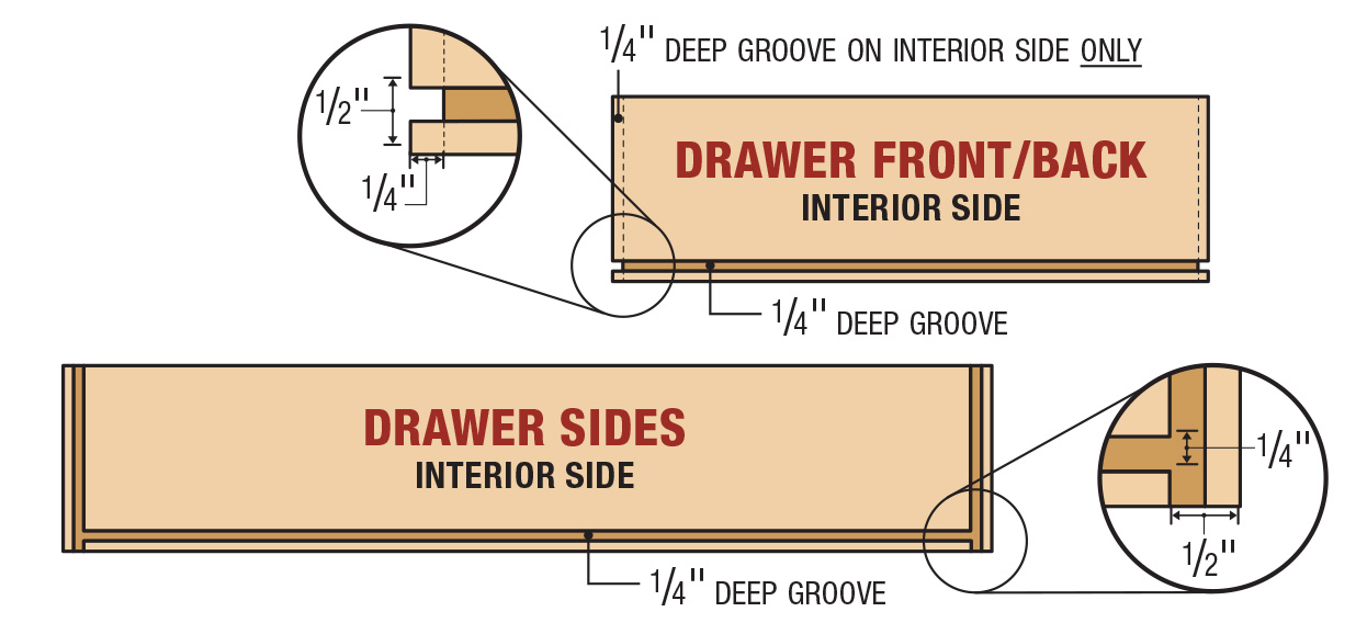 18 The drawer boxes are made with a tongue and dado joint.
