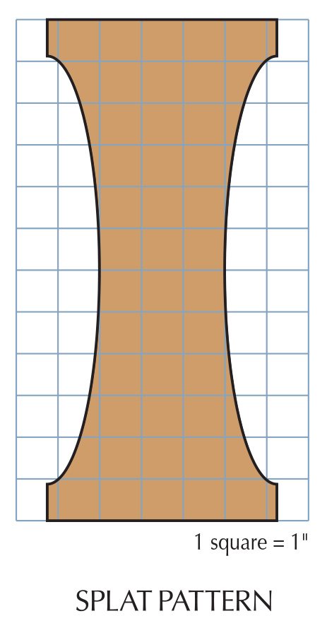 Place a scrap of equal thickness perpendicular to the splat material. Measure down 91⁄2” from the intersection of the two pieces and place the nail. This is the pivot point of the compass. As you draw the line you will see that the arc starts about an inch from the end of the splat on both sides. Repeat the steps for the second side of the splat and you are ready to cut those with the jigsaw. Clean up any cut marks with a rasp and sandpaper.