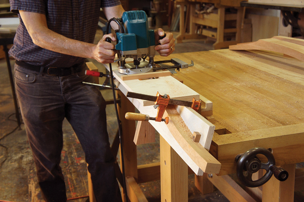 You could use a router template and a flush-trim-bit setup to start the smoothing process, but I usually start right in with hand tools. Routing will sometimes blow out wood as you cut against the grain when cutting the curves. Even if you manage to avoid that, there will still be plenty of smoothing to do afterward to get rid of the machine marks. So I simply try to cut well at the band saw, and proceed directly to smoothing.