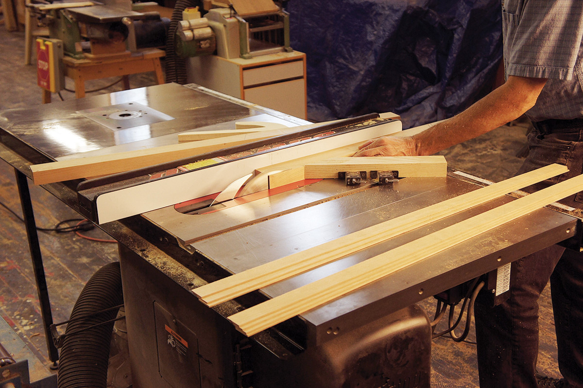 Rip the next pair of strips, add the strips to the appropriate pile, and repeat until you’ve got the 16 strips you need. Do not attempt to rip strips out of a board narrower than 1⁄2“.