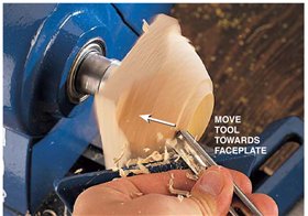 - A 1/2-in. spindle gouge, a larger gouge for roughing out the main cylinder and a 1/4-in. parting tool.