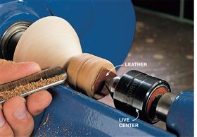 - A 1-in. square piece of leather or thick fabric to protect the axle cap from the live center when turning.