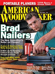Sources(Note: Source information may have changed since the original publication date.) Craft Supplies USA, woodturnerscatalog.com, 800-551-8876. Apprentice 60 Degree Revolving Cone Center, #9794760001. Woodcraft, woodcraft.com, 800-225-1153, Metric 14 mm brad-point bit, #146623; Fractional 1/2" This story originally apeared in American Woodworker, April 2000, issue #79 |