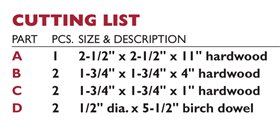 - A drill press for drilling holes in the blanks, plus a 1/2-in. brad-point bit and either a 14mm brad-point bit or a 9/16-in. spade bit.