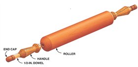 Use “closed-grain” wood—cherry, maple, birch or beech—for the roller so food particles aren’t pushed into the wood pores.Don’t use exotic hardwoods—zebra wood, cocobolo, and others—for the roller because they can be toxic. For other turned parts, use whatever scrap hardwoods you have around the shop.