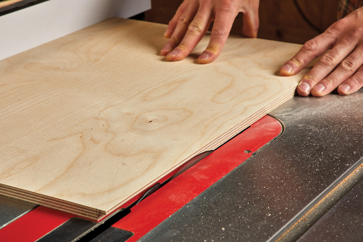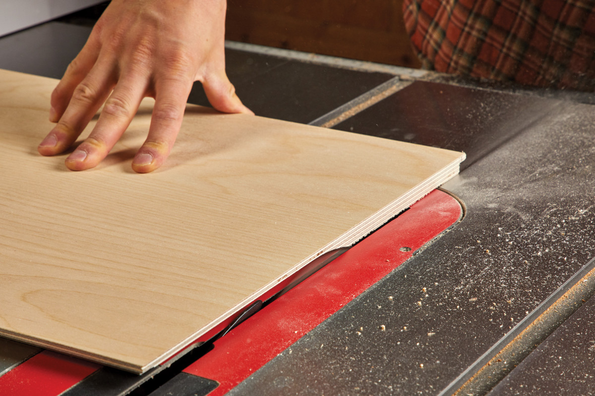 The top is attached in a similar, yet slightly different manner. Starting with a 3/4“ piece of plywood, cut it down to its final dimensions. While still at the table saw, reset the blade height and cut a 3/4“ wide by 3/8“ deep rabbet around all for sides. Since a snug fit is desired, sneaking up on the measurements is always encouraged. Once installed, proceed to screw the top to the case.