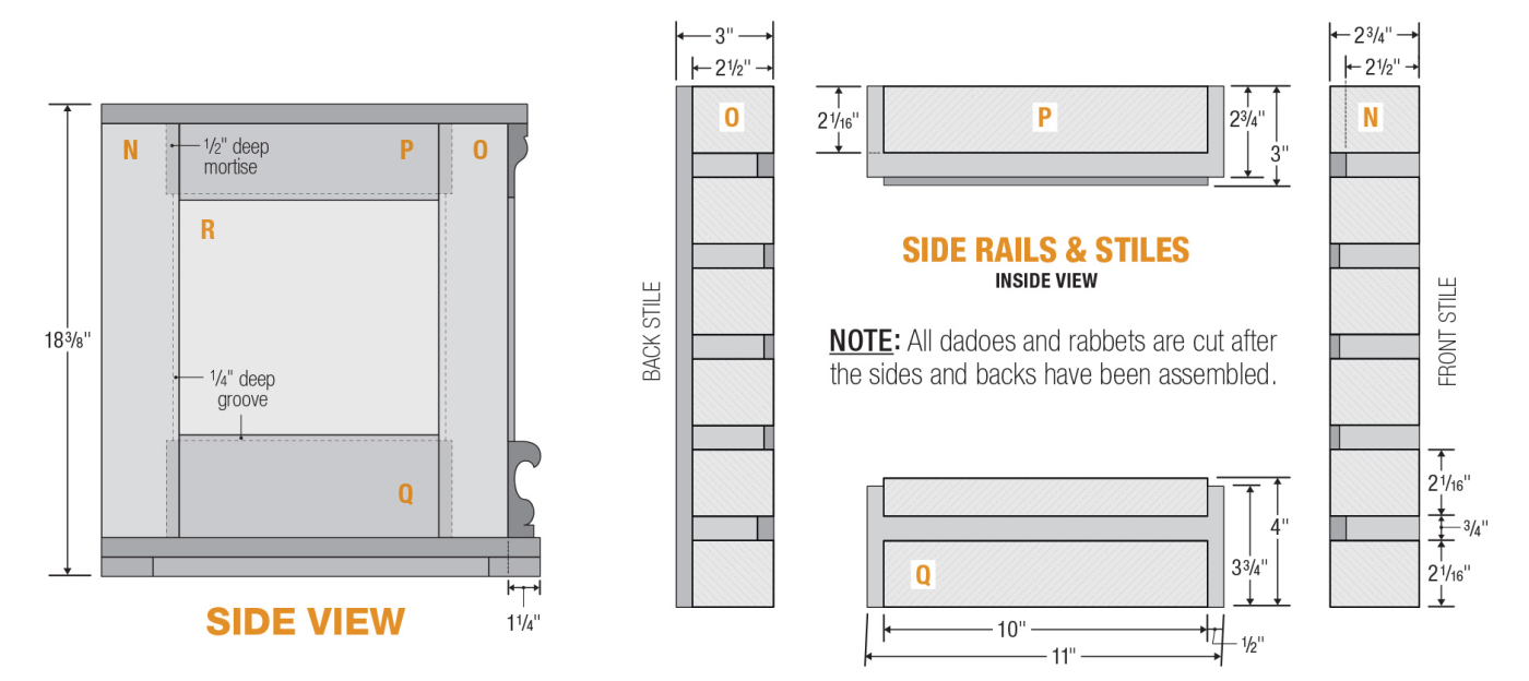 The side panels are a straight glue up with two rails, two stiles and a panel.