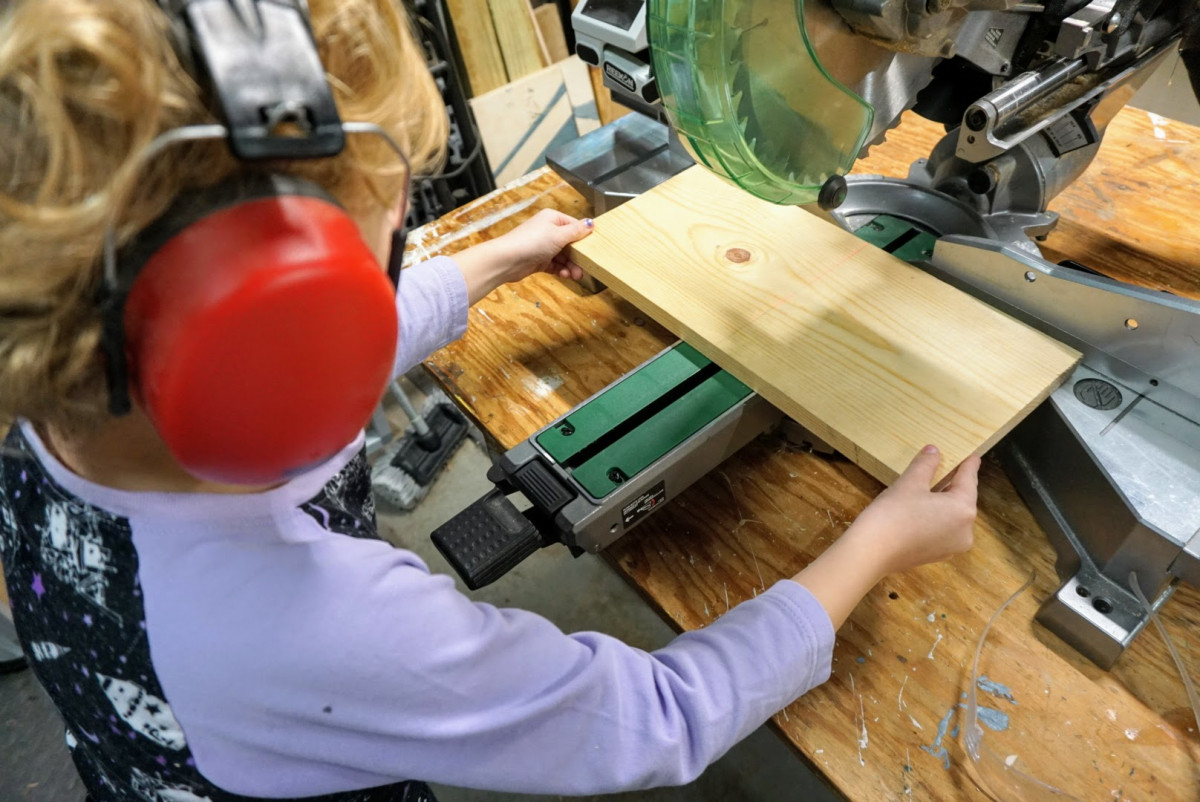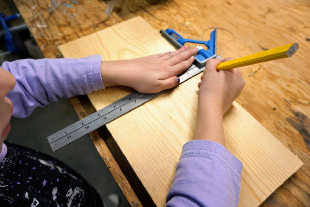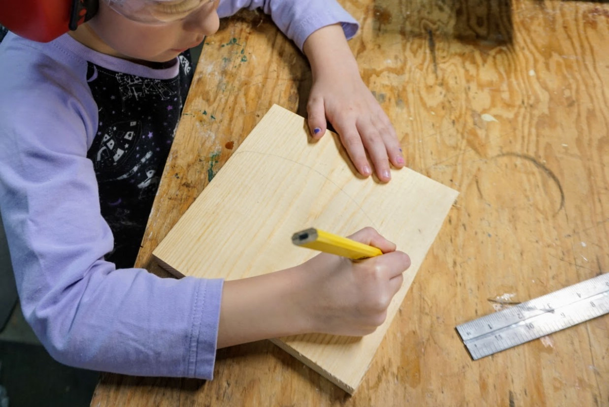 Prepare The Stock The more ownership you can give your child, the better. Here Oliver marks the line for the rough cut of our scrap piece.