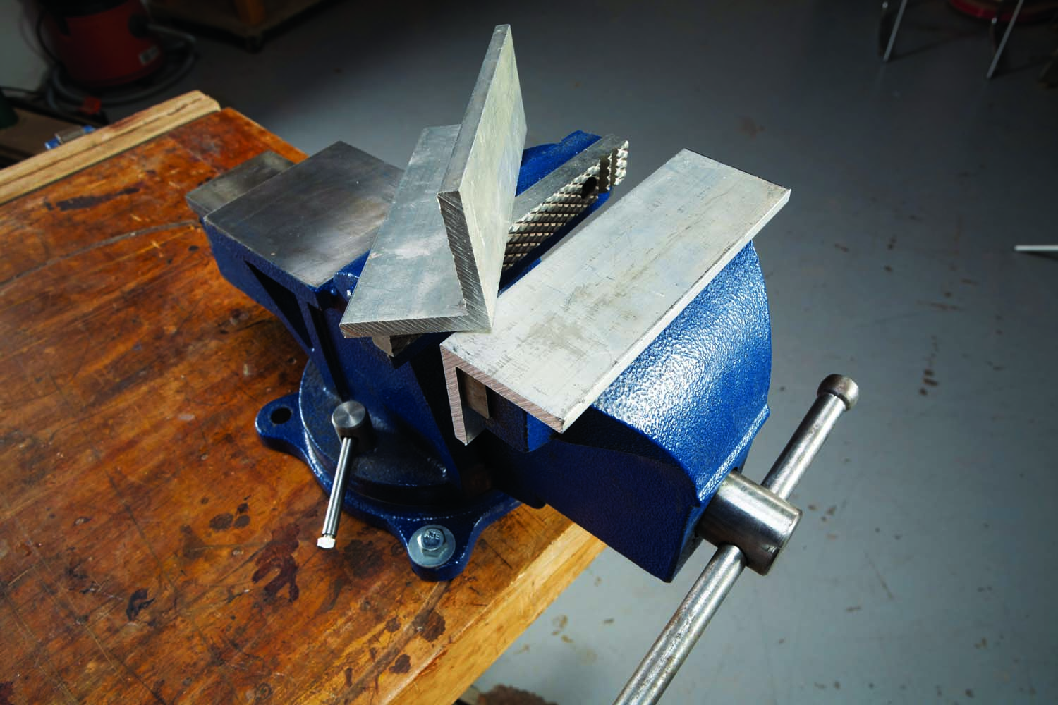 This type of vise has corrugated, non-slip jaws to hold a piece of metal for sawing, filing or bending. When you need to hold something that might be damaged by the jaws, such as the shank of a router bit or a length of threaded rod, use jaw protectors made from aluminum angle or pieces of pine. Pine is easy to crush, which helps hold a round object.