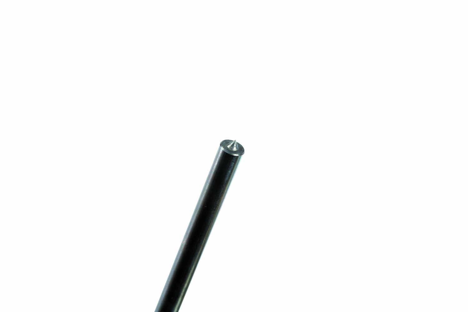Let’s say you’ve drilled a hole in one object in order to fasten it to another. How do you locate the exact center of that hole on the second piece? You use a transfer punch—a rod with a sharp point on its end.