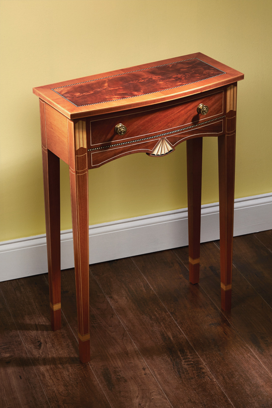 Period touch. Shop-made inlay, such as this bookend design on a table I built, was important in Federal-period furniture; it’s a way to decorate using contrasting colors.