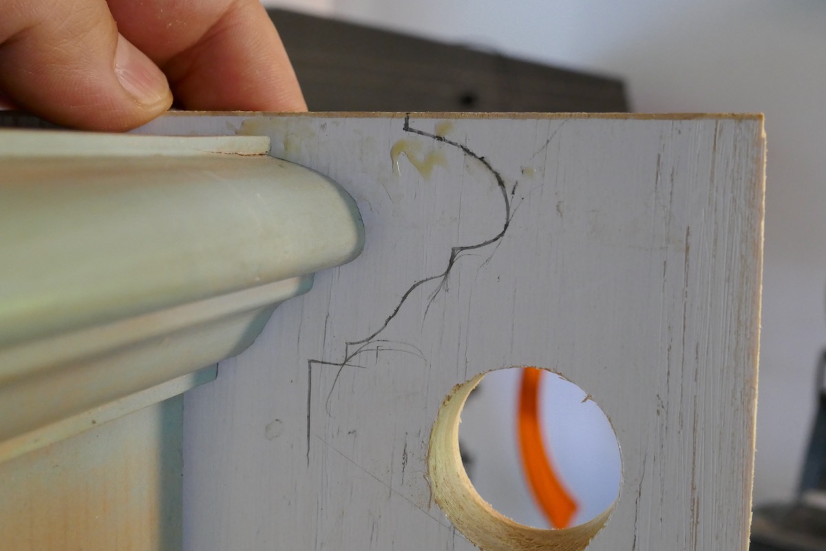 I traced the profile of the molding using the back side of the top. I wanted to have that profile visible for later stages to help me choose the right tool to sculpt the reconstructed piece.