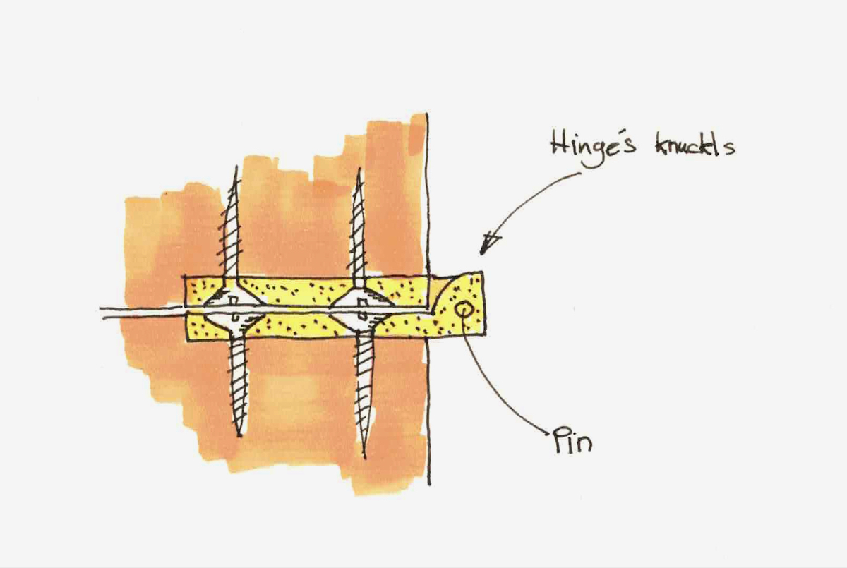 Most high-quality extruded brass hinges are installed where their knuckles and the pin are cantilevered outside the piece’s back. In theory, we can push them further inwards as long as we ensure the pin’s locus is kept outside.