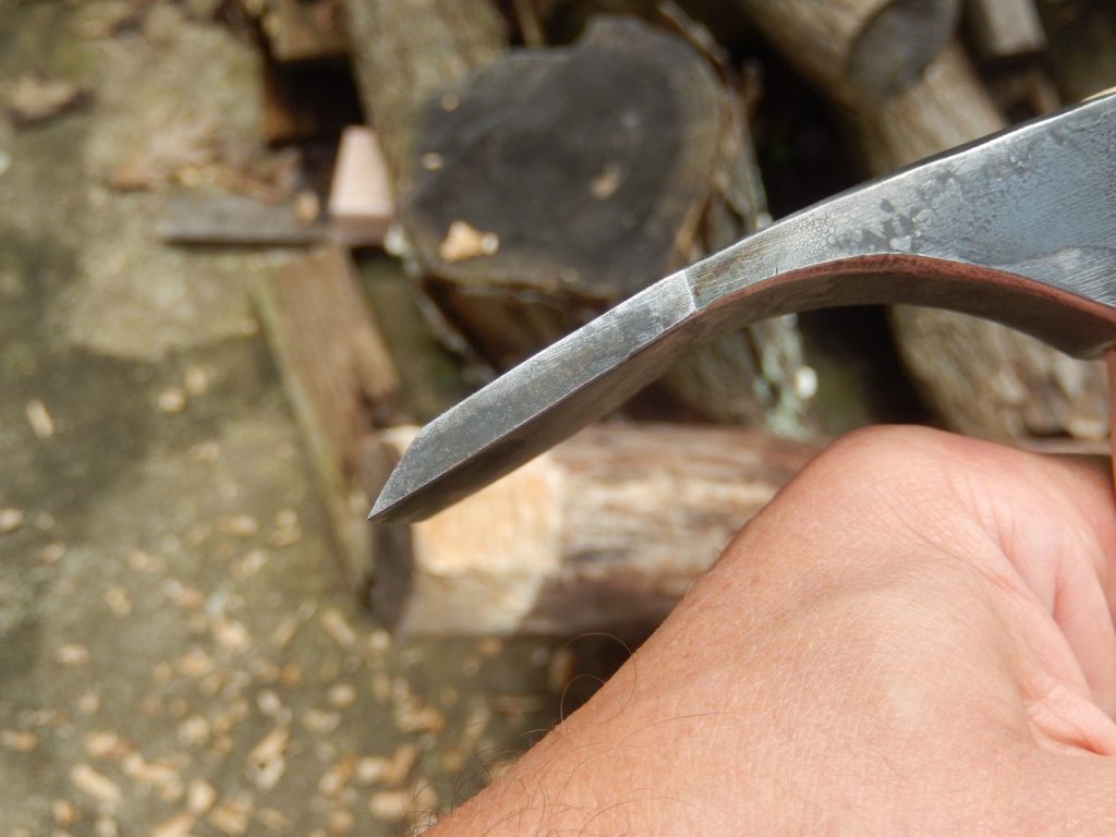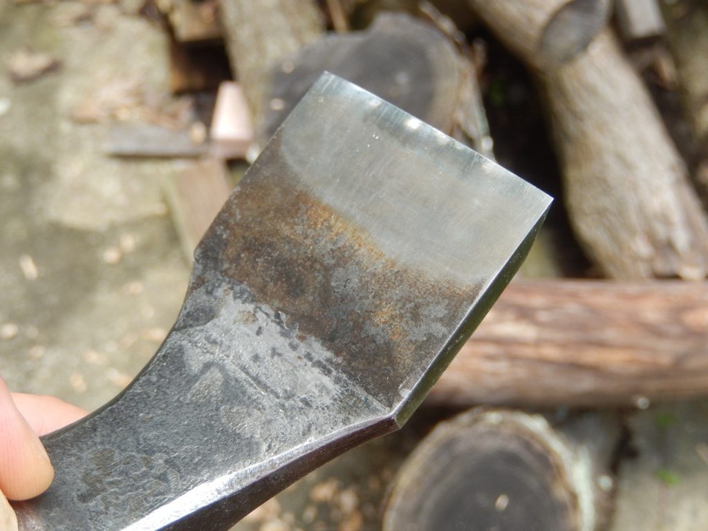 Three years ago while teaching a woodworking class at Peters Valley I met Blacksmith Eric Dennis, who was at the time the studio assistant in the iron shop. When I entered the noisy, coal-smoky, old building, Eric was in the middle of forging some impressive looking tool. Coincidentally, that very summer I was trying to buy (or custom ordering) a small straight blade adze for green-wood carving. There are a few straight blade hand adzes on the market but hardly any of them have an up-facing bevel, like the typical bowl carving adze. So after Eric laid down his hammer, and the hammer-anvil smithing, “Rhapsody in black” subsided, we talked for a while. Then I asked him if he would be able to forge an adze for me. He relayed that he would be delighted. He also mentioned that he’s going to laminate the head, making the cutting edge made from high-quality tool-steel, while the rest of the head will be made of softer, yet more shock resistant steel.