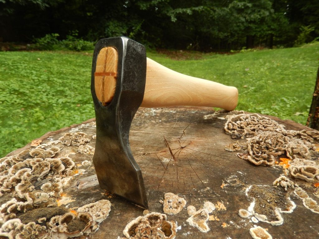 It seems like hard maple was the perfect wood for the job, as it was tough enough to withstand the mallet blows and strong enough to cleave a pass through the hickory fibers and wedge itself in. I did not use glue on the second wedge. Instead, I saturated the top of the handle with linseed oil in hope that overtime it will protect the area and provide some adhesion between the fibers of the maple and the Hickory.