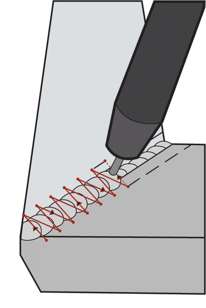 Manipulating the way you weave the arc across the weld area will affect the penetration, size and appearance of the weld. I have found for simple tasks, a zig-zag weave produces a weld that fills the gap and provides solid penetration. There are dozens of variations; read up and try them all!