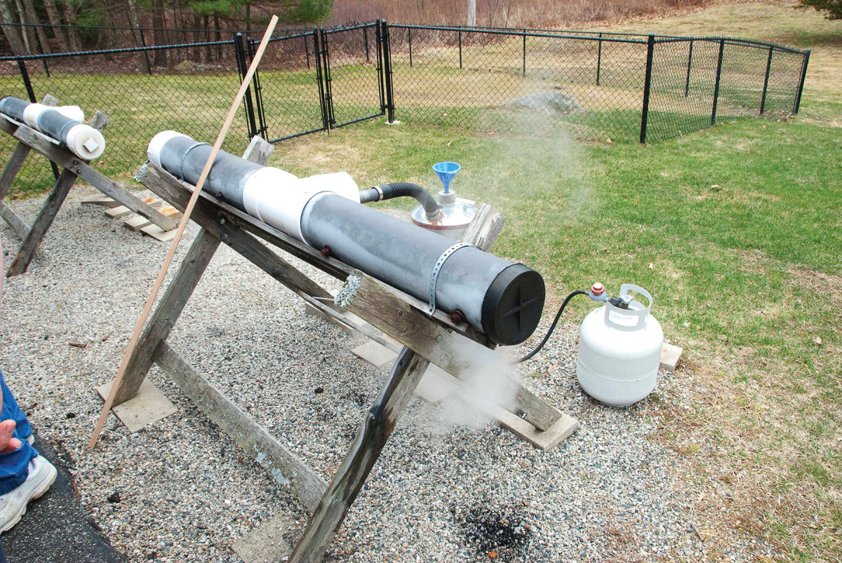 The steam is generated in a boiler (I use a galvanized steel utility can) sitting on a propane burner – the kind used for cooking crawdads or deep-frying turkeys. I do not use an electric heater, because these will not produce a vigorous, roiling boil. Steaming wood is a case where bigger is better and less is not more.