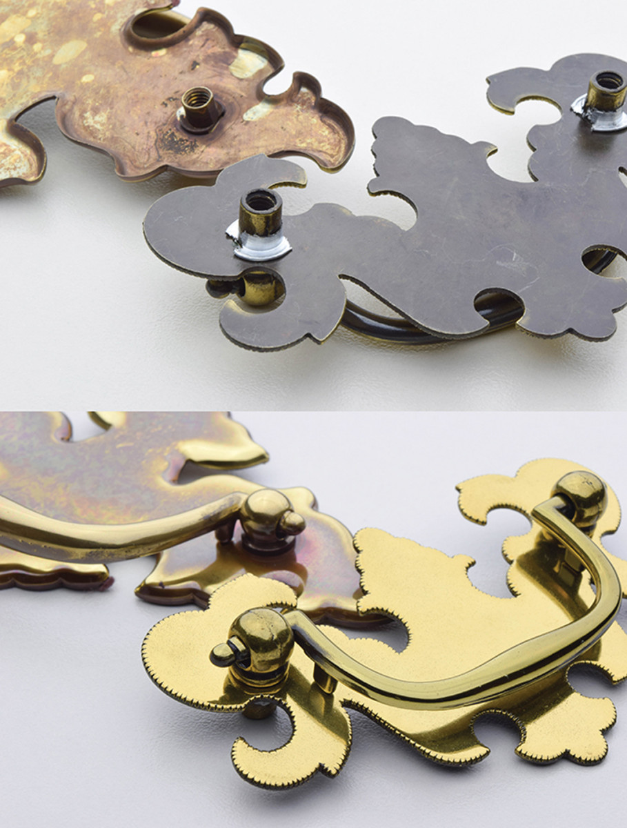 My parents and grandparents’ homes have been filled with antiques since the beginning, and I have grown up looking at and touching furniture and the metal that goes on it.
