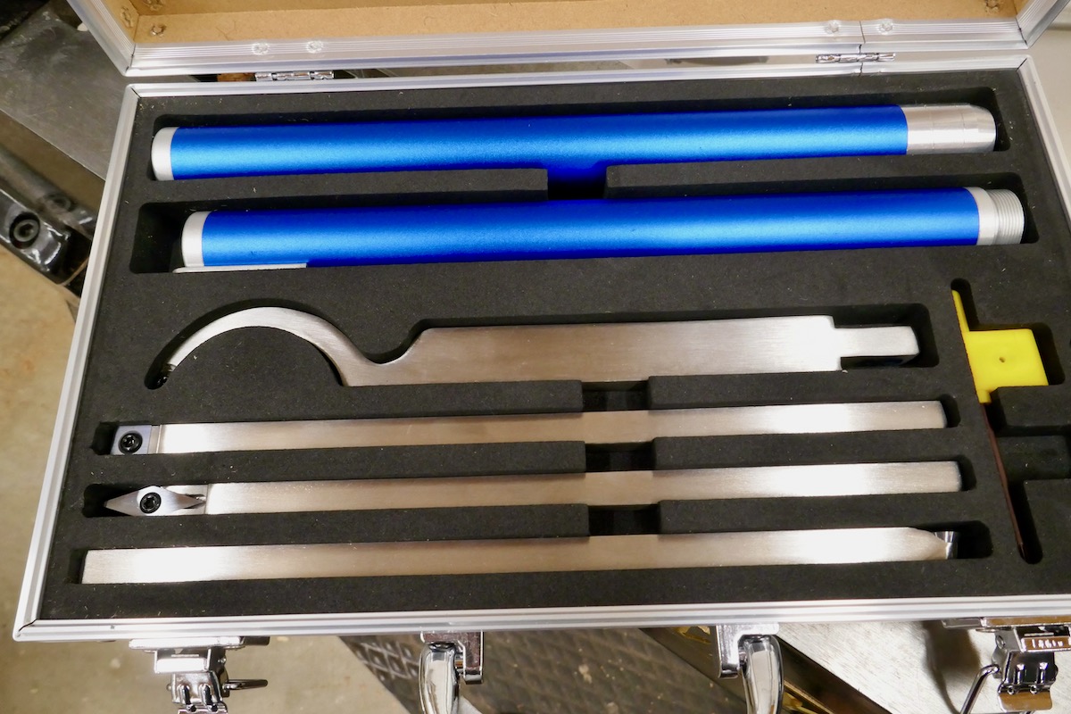 While all carbide turning tool inserts are mounted upon a steel shaft, the handle material can vary between manufacturers. This set, for instance, features aluminum handles, while others might opt for wood. Certain aluminum sets provide both a short handle and an extension sleeve, enhancing reach for larger workpieces.