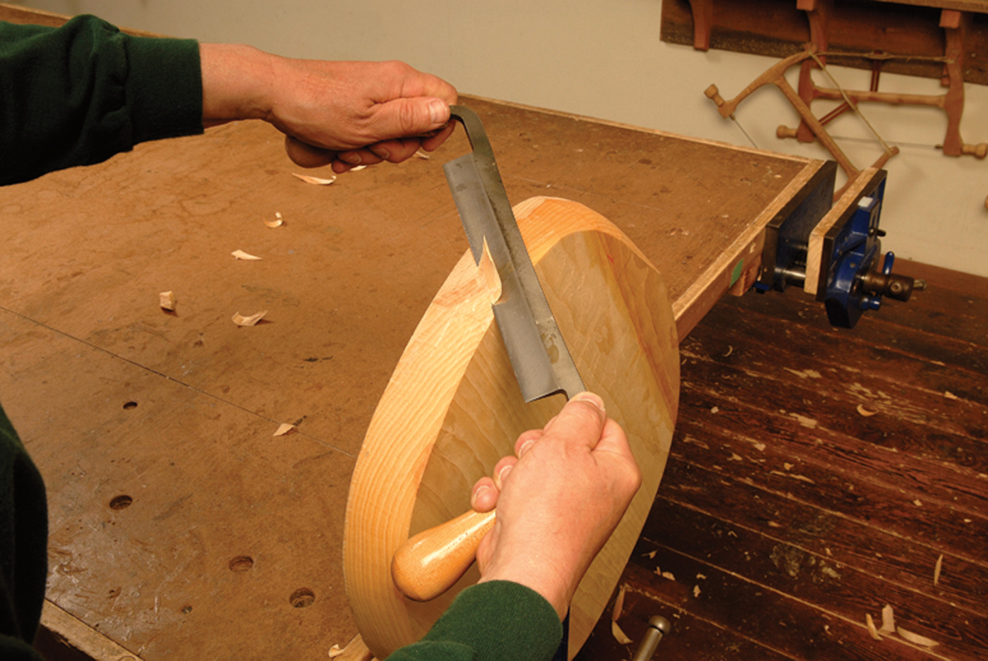 The spokeshave usually cleans up after the drawknife and brings your work down to the line. The tool will create a finished surface, or one that requires only a light sanding. The difference in the two tools is that while the drawknife can also make fine cuts, the spokeshave cannot do heavy jobs. It is a lightweight tool intended for fine work.