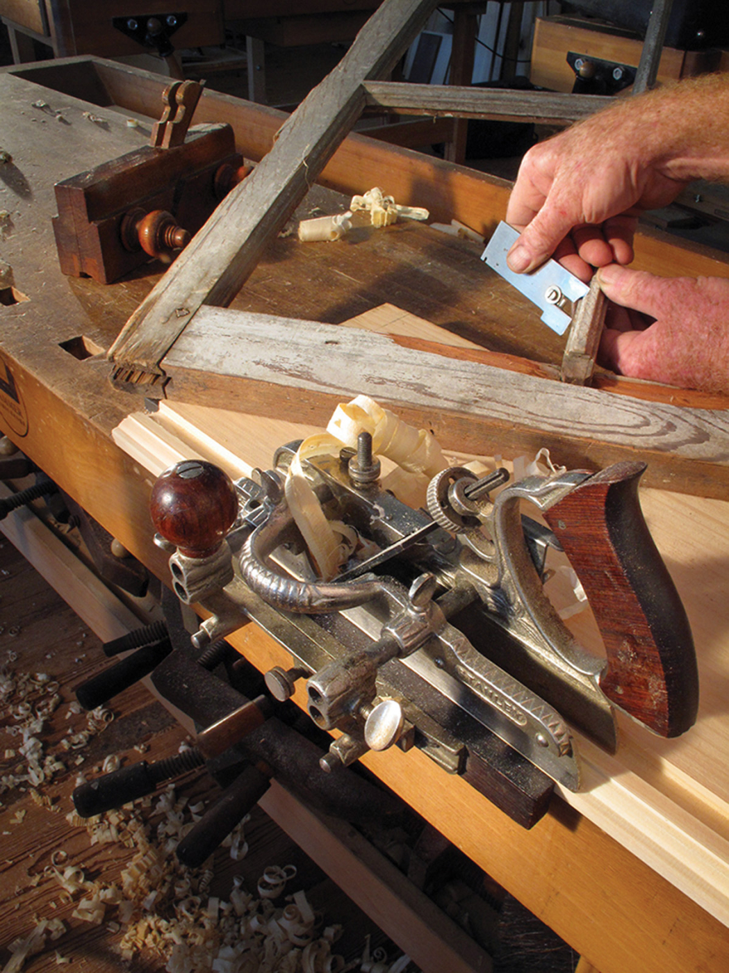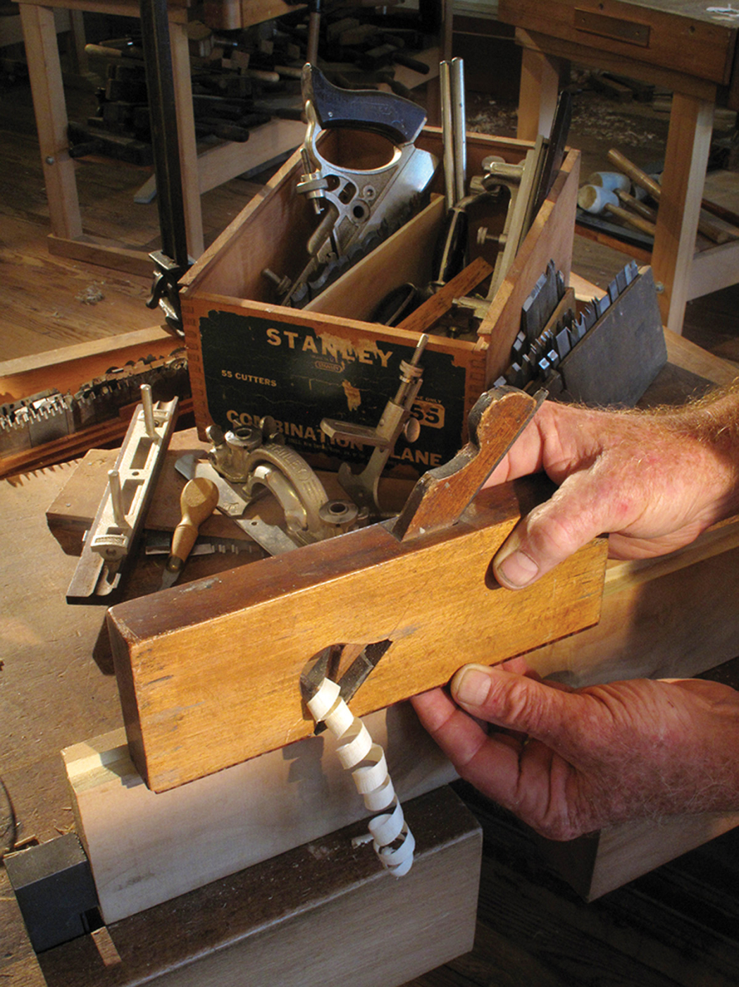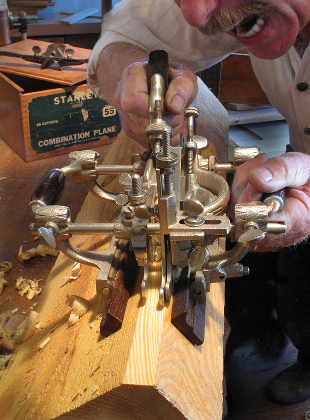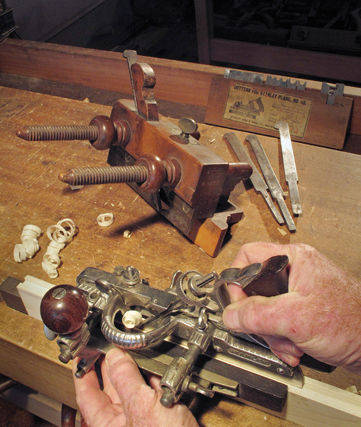 It’s true – you can make the muntins and frame of a glazed window or door with this tool, but it’s in restoration work where it starts to earn its keep. Say you have a damaged window with one small piece missing. You might search out the antique plane that matches – or you can grind a cutter for your combination plane and make the necessary adjustments to replicate that profile. Window work has always demanded the best, straight-grained stock, so let’s take that as a given, and because we’re concerned with only short runs of stock for the repair, we can put up with the other frustrations of the plane.