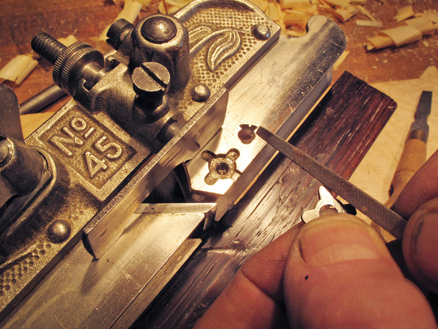 ‘Luke – I am your father.’ The wooden plow plane with interchangeable irons and adjustable fences gave birth to the all-metal combination planes. The Stanley No. 45 shown here makes a fine plow plane for cutting grooves – as long as the fence doesn’t slip.