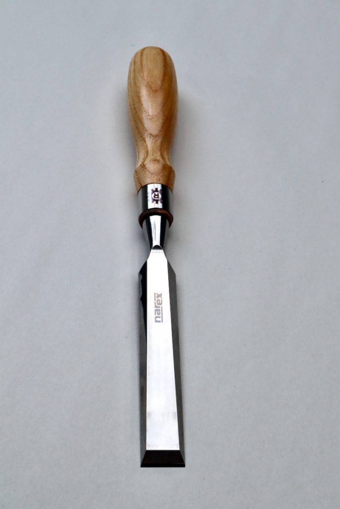 This Narex bench chisel is not sold in North America. It has a “walled” bevel edge.