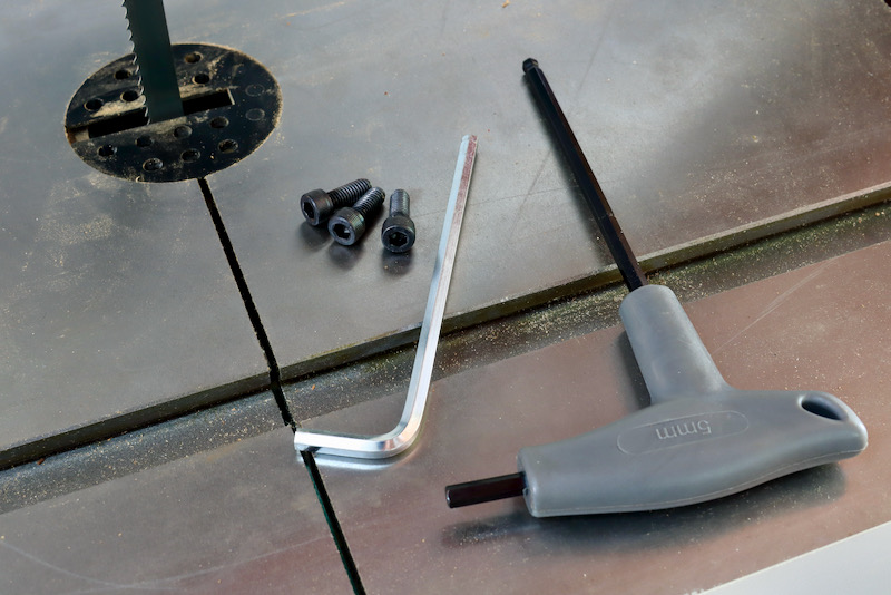 I own three bandsaws. Two are hand-me-downs from neighbors and the most recent arrival is a brand new Grizzly 17” that I bought. The Grizzly is a great machine but like many of its peers, most of the bandsaw adjustment features are controlled by locking socket head cap screw, aka Allen screws. There is nothing wrong with Allen screws, in fact, I prefer them to Philips screws and even slotted screws. But the reality is that every time I need to adjust something I have to negotiate with the Allen key that opens them. Many might not see this as an issue and would claim that the need for blade adjustment is not that high. But I find the use of the typical Allen key an inconvenience, so why not resolve this with an improvement?