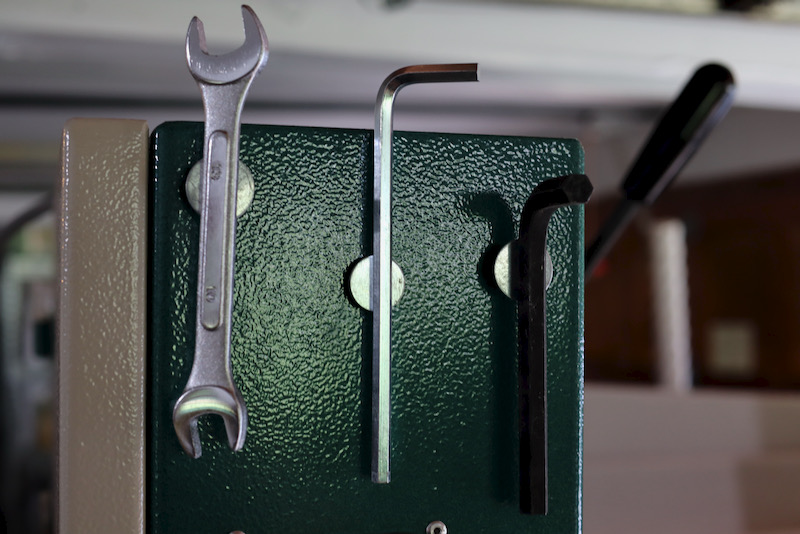 Place a magnet on the saw’s frame to hang the needed keys on it. This minor improvement will save you time on the next occasion you’ll need to adjust your saw.