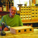 Photo 7. Glue the second end panel in place. The lock miter joints are self-aligning. They won’t slip when you clamp them—a big advantage over any other type of miter joint.