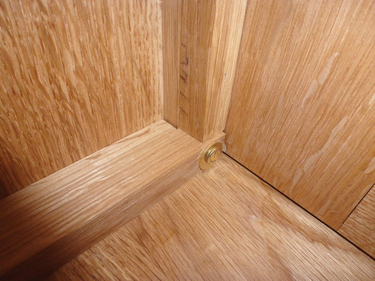 As the final touch, attach a small piece of oak to the rail at the top behind the doors, to serve as a stop.